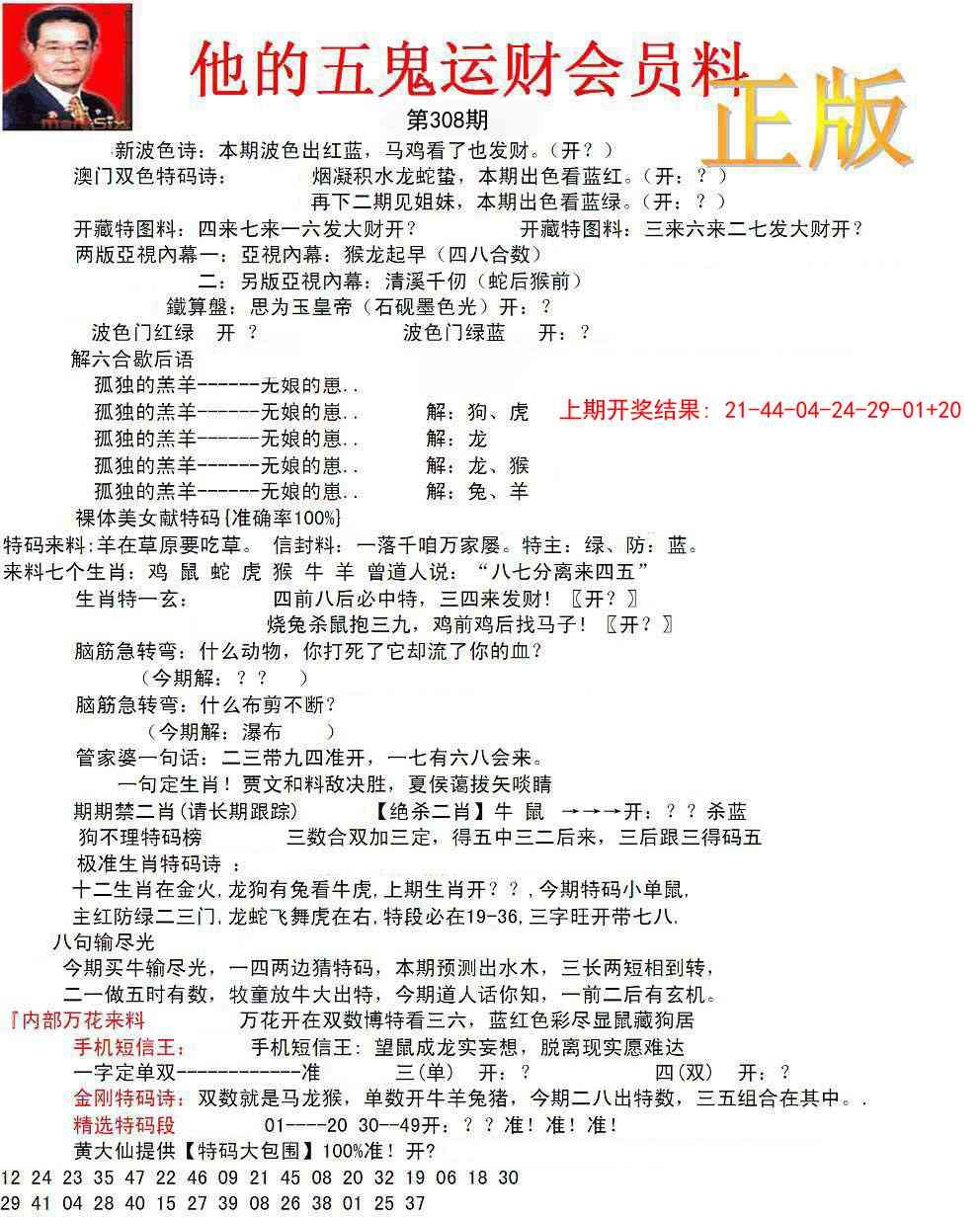 正版五鬼运财会员料