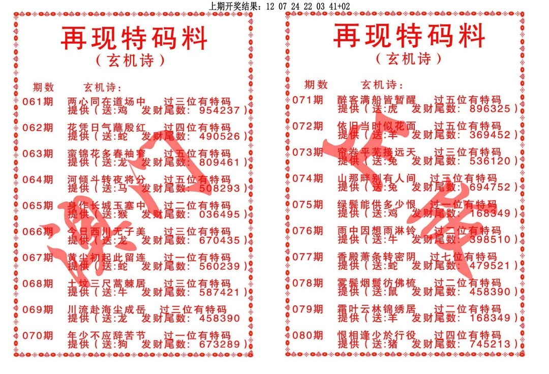 再现特码料