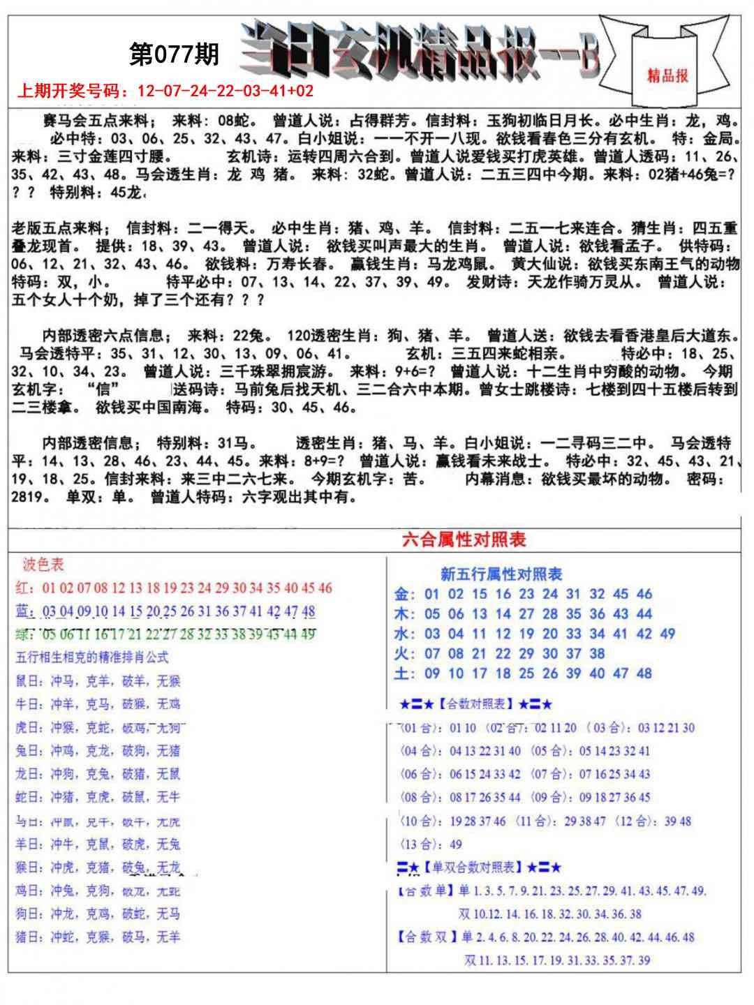 当日玄机精品报B